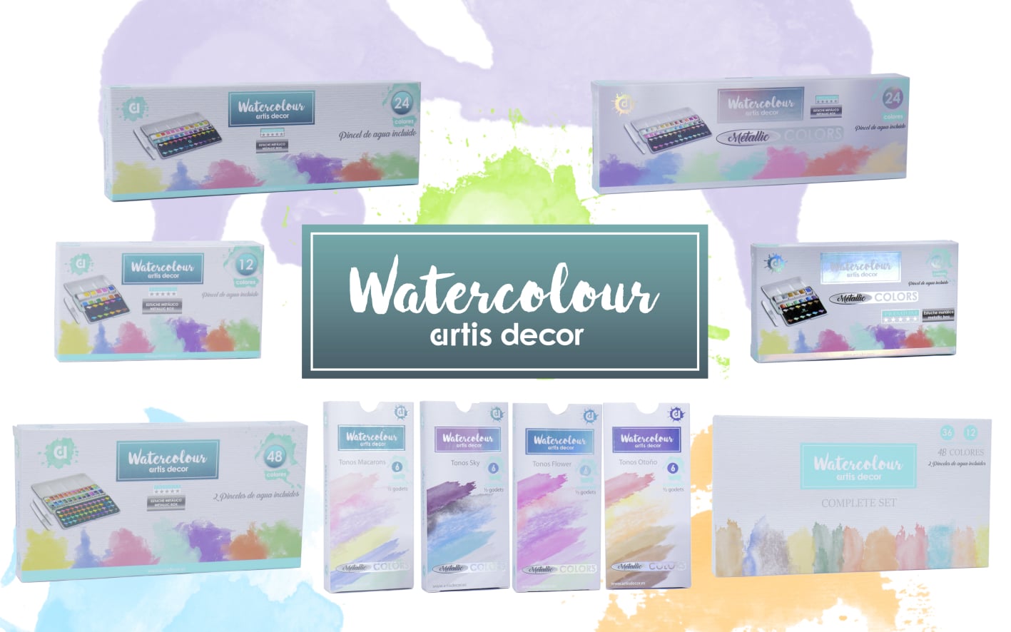 Acuarelas de colores sutiles, ideal para la generación de transparencias.