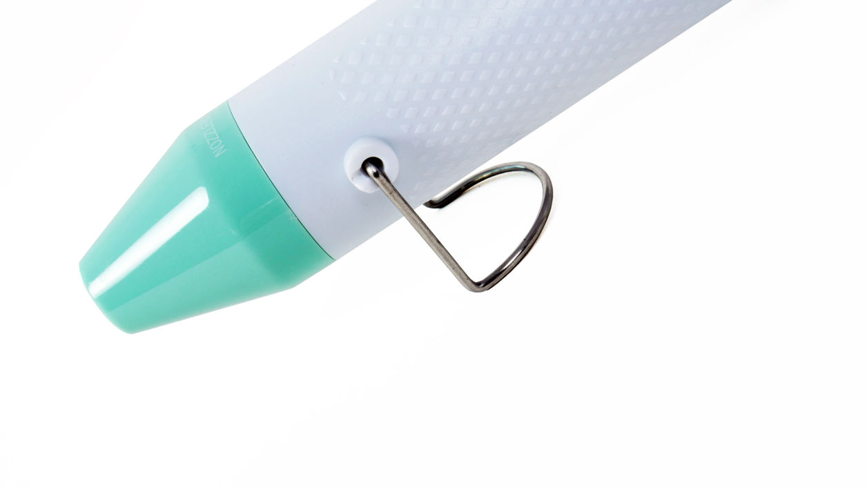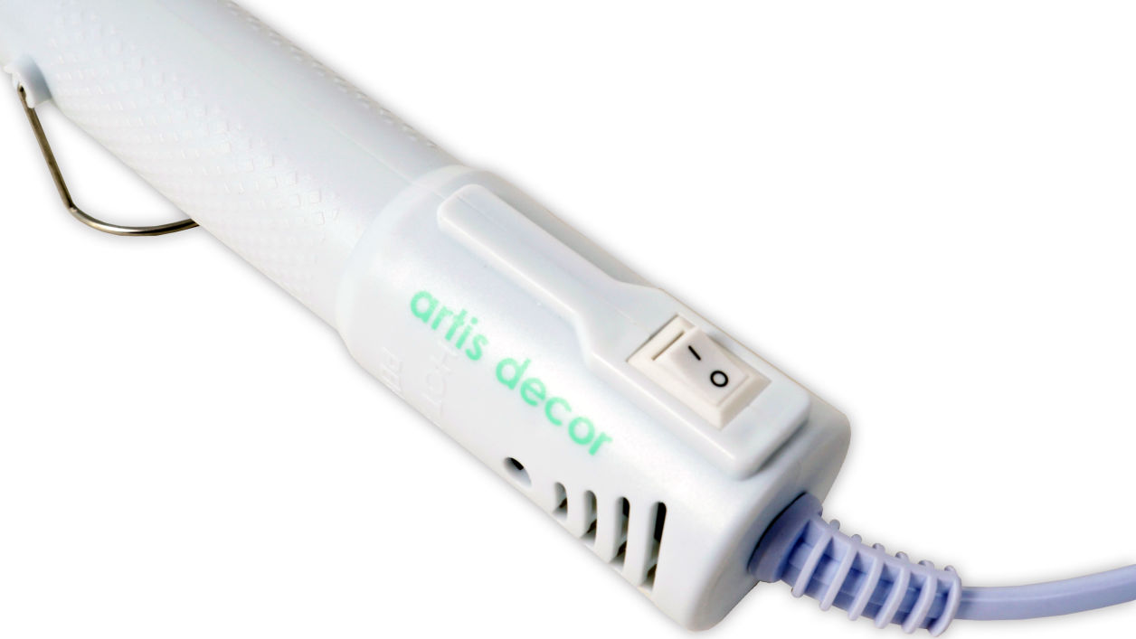 La pistola de calor para embossing de Artis Decor es ideal para trabajos de embossing con tintas y polvos. su tamaño de 19cm. y la forma con puntos de relieve para la sujeción la hacen muy cómoda para trabajar y su color mint, muy agradable a la vista.